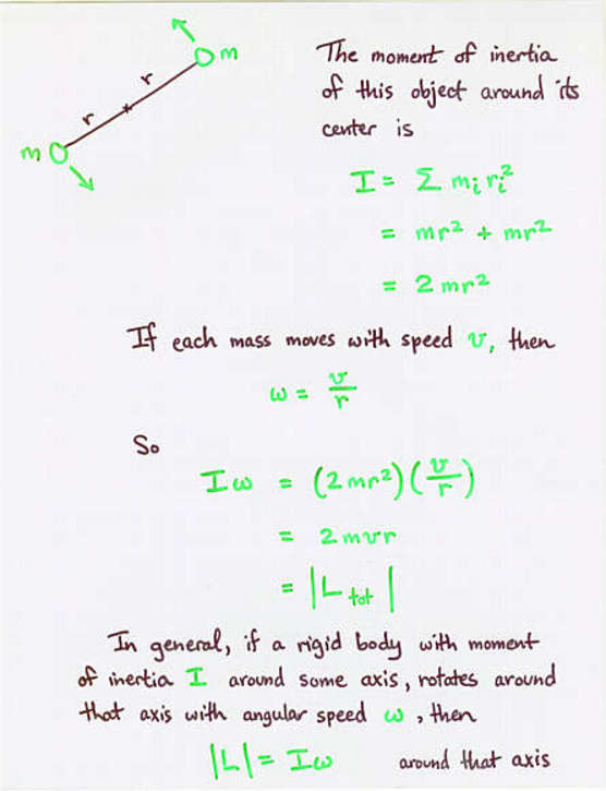 angular momentum = (moment of inertia) * (angular velocity)