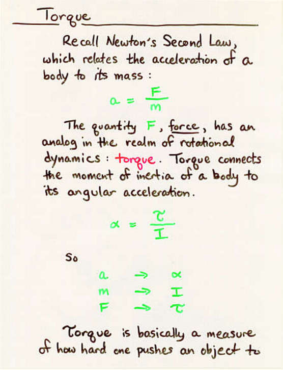 torque = (moment of inertia) * (angular acceleration)