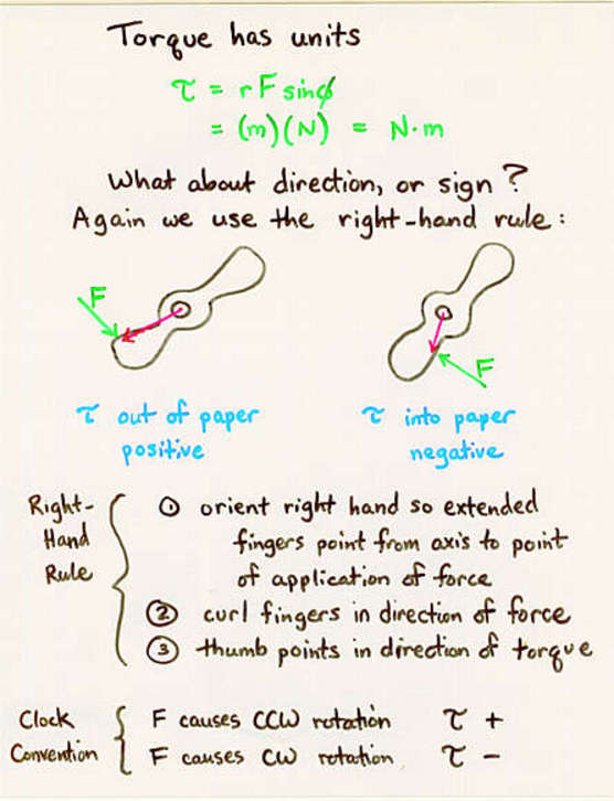 The right-hand rule, or the clockwise convention, can be used to determine the direction/sign of torque